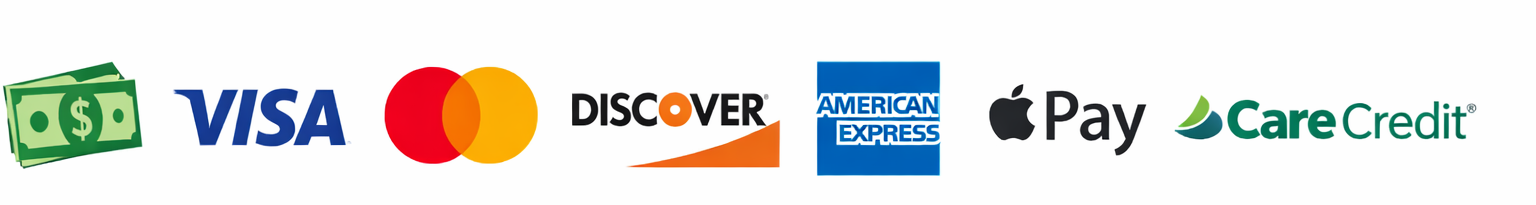 Cash - Visa - MasterCard - Discover - American Express - Apple Pay - CareCredit